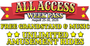By purchasing this ticket, you are entitled to ONE (1) Wristband redeemable at any gate, which is good for FREE Grandstand Events, FREE Family Acts, FREE Music in the Midway and UNLIMITED Amusement Rides for EACH DAY of the fair.  NON-TRANSFERABLE – DO NOT remove your wristband after it has been attached, replacements are not allowed. Please have a PRINTED ticket for quick and efficient transactions. If you are unable to print your ticket(s), a clear screenshot of the QR code can be shown on your smart phone or device.